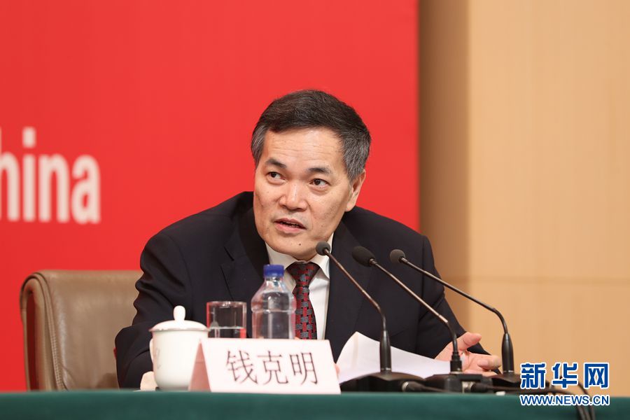 9月29日,庆祝中华人民共和国成立70周年活动新闻中心在北京梅地亚中心二层新闻发布厅举办第五场新闻发布会。图为商务部副部长钱克明介绍相关情况。新华网记者 郭小天 摄