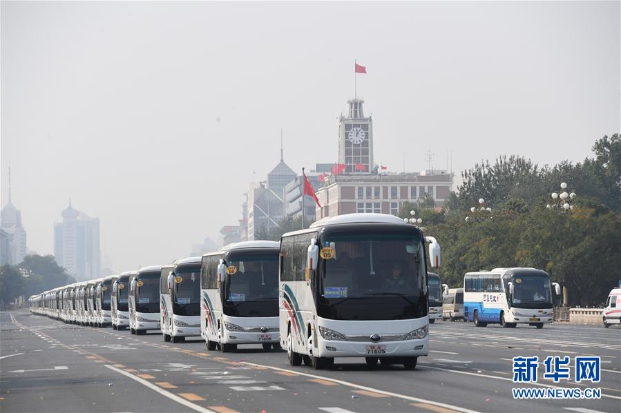 10月1日13时许,嘉宾乘大巴车离开。10月1日,中华人民共和国喜迎七十华诞,举国欢庆。新华社记者用镜头记录下难忘的首都北京国庆24小时,留下永恒记忆。新华社记者 潘昱龙 摄