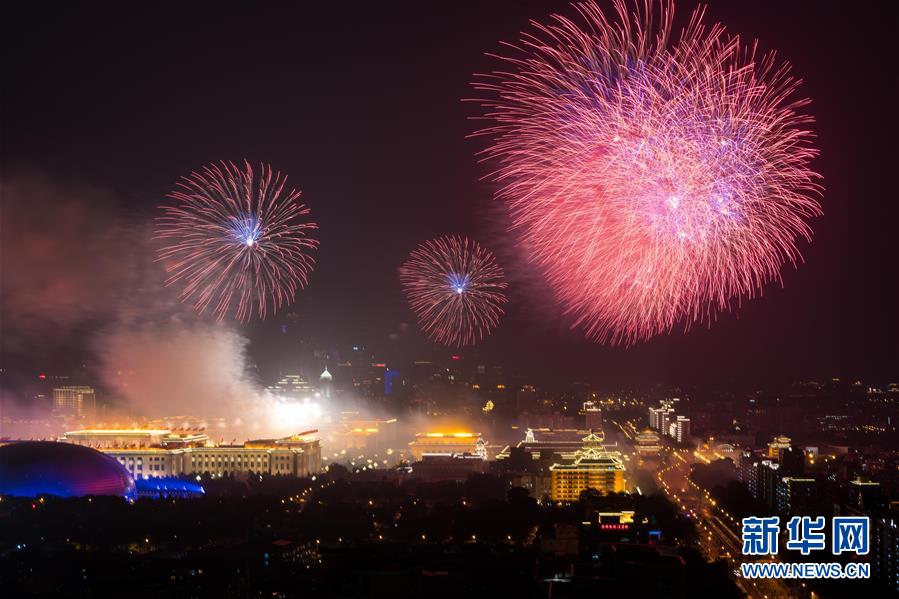 10月1日,中华人民共和国喜迎七十华诞,举国欢庆。新华社记者用镜头记录下难忘的首都北京国庆24小时,留下永恒记忆。这是21时28分拍摄的联欢活动现场。新华社记者 刘金海 摄