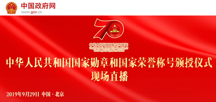 中华人民共和国国家勋章和国家荣誉称号颁授仪式于9月29日上午10时在人民大会堂隆重举行。中共中央总书记、国家主席、中央军委主席习近平向国家勋章和国家荣誉称号获得者分别授予“共和国勋章”“友谊勋章”和国家荣誉称号奖章并发表重要讲话。