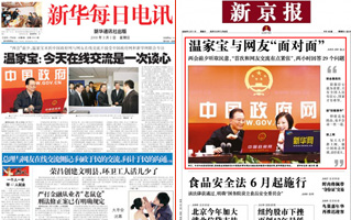 | · | [一网情深]:总理上网,与网情深,好评如潮,开创新风!今天对中国互联网乃至全球互联网真是一个特殊的日子! | | · | [春秋战国]:总理,您曾说“人民有权了解政府重大决策过程”,但是对于政府重大决策过程,如何确保老百姓了解、参与的渠道畅通呢? | | · | [独树一帜]:这么多网友向您提问,您不可能一一回答的。请问您打算怎么处理这些问题呢? | | · | [网民协会]:总理你好,听了您的话我很感动,我觉得这种和网友直接交流的形式挺好,以后会不会定期进行这种交流。会不会鼓励下面各级的地方官也采用这种形式直接和网友交流?在网上做民意调查? | | · | [天天向上]:总理,您好。我感觉中国人对待自己的文化真是重视得不够,能不能设立全国读书节,提倡全民读书,发扬中国传统文化。 | | · | [路人]:总理您好,别的村路都修好了,俺们村是晴天一脚灰,雨天一脚泥,能不能补贴点钱给我们修这条路,希望您能看到,陕西省城固县,大田村的路。 | | · | [金豆豆银豆豆]:温总理,我们同学同事在聚会或者聊天的时候,经常会聊到不同行业间的收入差距太大的问题,一些垄断行业收入非常高,这导致很多人心理不平衡,政府有没有考虑要解决这个问题? | | · | [940874680]:敬爱的总理,你辛苦了!我们是在东莞务工的农民工,因金融危机工厂效益不好无班加,工资比原来少了一半多,因钱少了也不敢象以前那样消费了,因此帮不了政府什忙,真是很抱歉!! | | · | [人生过客]:我是来自武汉的一位网友。敬爱的总理,我是一名学生家长,现在的中小学助学费、进门费、择校费的现象特别普遍,特别是在大中城市,这个问题特别突出,政府也出台了不少措施,但是这个问题始终困扰着家长,怎么能彻底解决? | | · | [60.161.92.*]:我是一名农村教师,国家全免义务教育阶段学生学杂费,这是惠及子孙后代的大好事。但和城市相比,目前农村教育还很落后,根本原因是教育经费投入太少,农村教师待遇低,留不住人,农村教师的待遇问题何时解决啊? | | · | [我从海上来]:特别关注中美关系,奥巴马上台了,希拉里不久前刚刚结束对中国的访问。想问总理,中美关系将如何发展? | | · | [四川王佳淇]:温爷爷,我是王佳淇,是您5.12在新建小学废墟上看望过的孩子。我现在头发和脸都长好了,变得漂亮了。我记住了你的话“要坚强!”温爷爷,你工作很忙,也很累,可一定要注意身体哦!我真的好想马上再见到您! | | · | [您救过的孩子]:温爷爷,我是您5.12大地震中看望过的孩子,都江堰市新建小学的赵其松。我现在身体康复得不错。您说,“废墟上一定会绽放出最美丽的花朵”,我时时记在心中。谢谢温爷爷! | | · | [台湾网友“高雄的EE”]:我是来自台湾高雄的农民,大陆政府出台了对台湾农产品的一系列优惠政策,让我们很感激,也萌生将来到大陆开办农场的想法。我了解大陆政府的支援力度很大,不知到时候我是否也能享受和大陆农民一样的政策支援? | | · | [风的想象]:您对中国股市有信心吗?我建议,请您推动立法加强监管,尤其在上市准入和信息披露方面,同时要规定符合条件的公司用现金分红,以引导股民长期持有股票,从投机变投资,避免股市大起大落,让我们的钱包早日鼓起来。 | | · | [221.3]:我生活在西部农村,低收入导致了养子不防老。老俩口有两个儿子,每人每月给老人10元赡养费,这是老人生活的全部费用,这是全村公认的标准,这就算是孝顺了。总理,农村老人什么时候也能像城里人一样有养老金呢? | | · | [222.240.42]:总理您好!我是一名基层纪检干部,现在很多领导干部手中的权太大了,很多腐败都是因为权力过大造成的。请问总理,您对领导干部的权力怎么看?您对您手中的权力怎么看? | | · | [四季常青]:总理,我们在新闻里看到您会打棒球、打太极、打乒乓,投篮姿势还挺像回事,而且是左手。您平常有时间锻炼吗?最喜欢什么运动? | | · | [益言九顶]:温总理,您好!我从祖国来到肯尼亚工作生活已经五年多了,在非洲第一家“孔子学院”中任教。近年来,太极拳、武术这些中国元素逐渐在非洲大陆生根,对非洲兄弟热衷于学习中文和了解中国文化,您是怎么看的呢? | | · | [人间正道是沧桑]:总理,您好!在扩大内需的十项措施中,您提到要加快建设保障性安居工程,加大对廉租房建设的扶持力度。政府在落实这些优惠政策时如何能保证不走样? | | · | [把酒话桑麻]:在剑桥遇到的扔鞋事件,您想过会有这样的事情发生吗?您当时心里怎么想的?有没有想是危险品啊? | | · | [酸梅汤]:温总理,我们在电视上看到您的回锅肉炒得不错,饺子包的也很漂亮,平时在家您做饭吗?拿手菜是什么?喜欢吃什么菜? | | · | [老翁]:总理,作为一名消费者,我在商场已经能找到“消费者是上帝”的感觉了,什么时候在医院里我们患者也能找到这种感觉?让医生围着病人跑,而不是病人追着医生跑?做到这一点,医改就成功了,您说呢? | | · | [流浪的猫]:看到这么多网友热情地跟总理交流,我很感动,总理是大家的好总理,我却不知道该跟总理交流些什么了。一句话,祝中国强大!祝总理平安健康! | | · | [中国人]:温总理您好,来这里不想提问了,因为您太辛苦了,中国有您这么一位总理,感到骄傲~也是您让我明白,如何做一个好公民,做一个中国人!祝福中国越来越强! | | · | [221.233.19]:我来自湖北,感动于您救助白血病患儿。这样的孩子很多,仅总理您一己之力,