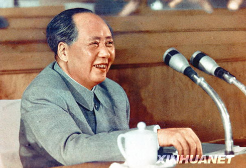 03毛泽东在扩大的中共中央工作会议上讲话(资料照片)。