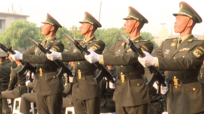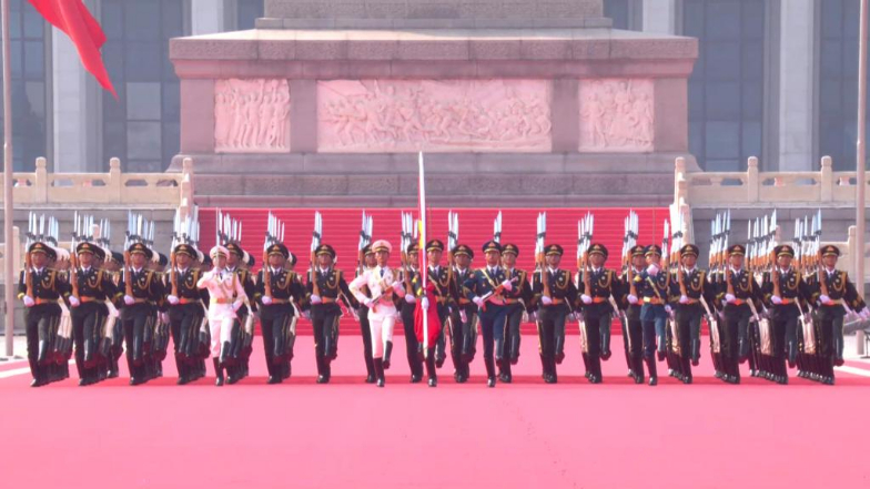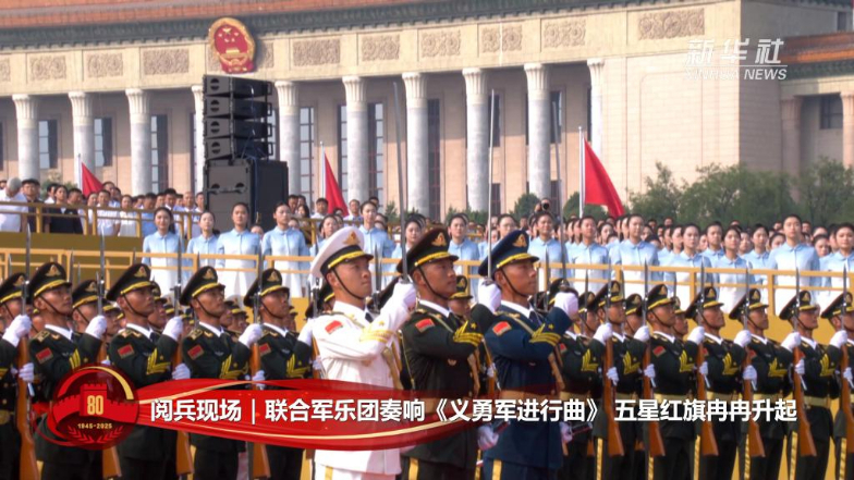 联合军乐团奏响《义勇军进行曲》 五星红旗冉冉升起