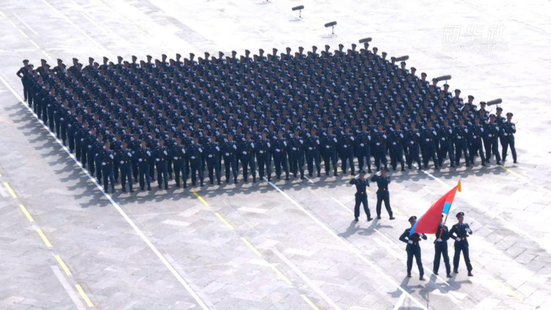 空中护旗梯队:护卫党旗、国旗、军旗 拉开阅兵分列式帷幕