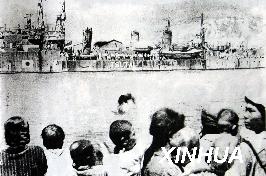 59年前,1946年5月7日,汽笛鸣响,两艘轮船缓缓驶离中国辽宁西部的葫芦岛港,2489名日本侨民和战俘从这里踏上了遣返回国之路。新华社记者 任勇 摄 这是翻拍的1946年日侨在葫芦岛码头等待遣返回国的历史资料照片。
