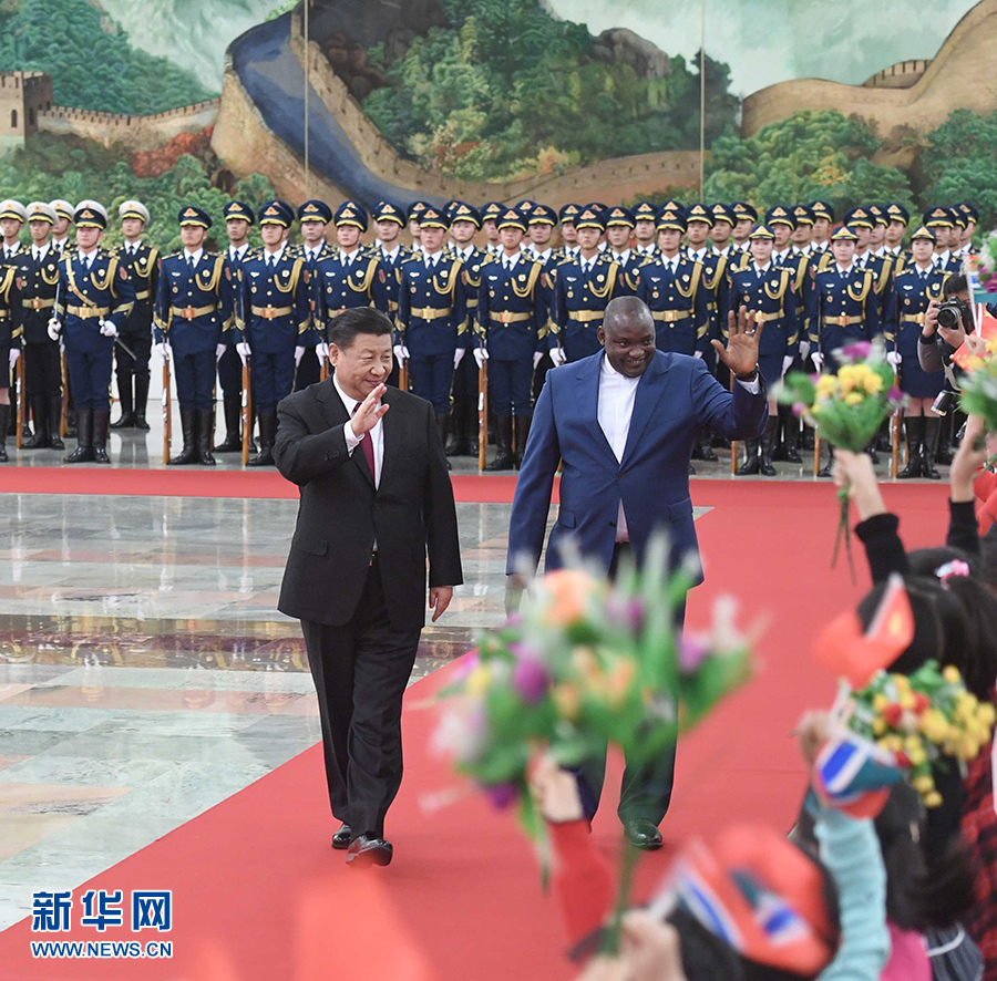 12月21日,国家主席习近平在北京人民大会堂同来华进行国事访问的冈比亚总统巴罗举行会谈。这是会谈前,习近平在人民大会堂北大厅为巴罗举行欢迎仪式。新华社记者 张铎 摄