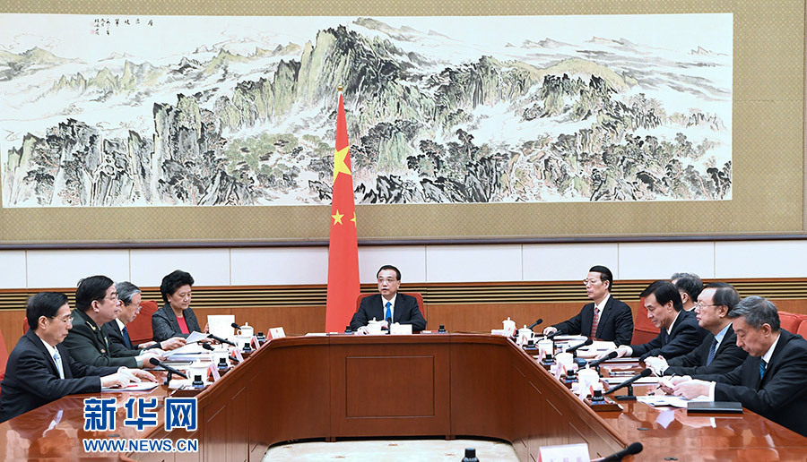 1月22日,国务院总理李克强在北京主持召开国务院第八次全体会议,讨论拟提请十三届全国人大一次会议审议的政府工作报告,决定将《政府工作报告(征求意见稿)》发往各省(区、市)和中央国家机关有关部门、单位征求意见。新华社记者 饶爱民 摄