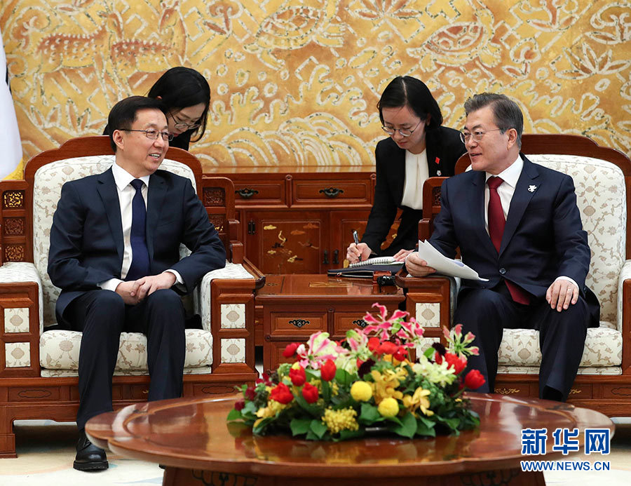 新华社韩国平昌2月9日电(记者骆珺 耿学鹏)当地时间2月8日下午,应邀出席韩国平昌冬奥会开幕式的习近平主席特别代表、中共中央政治局常委韩正在首尔青瓦台会见韩国总统文在寅。