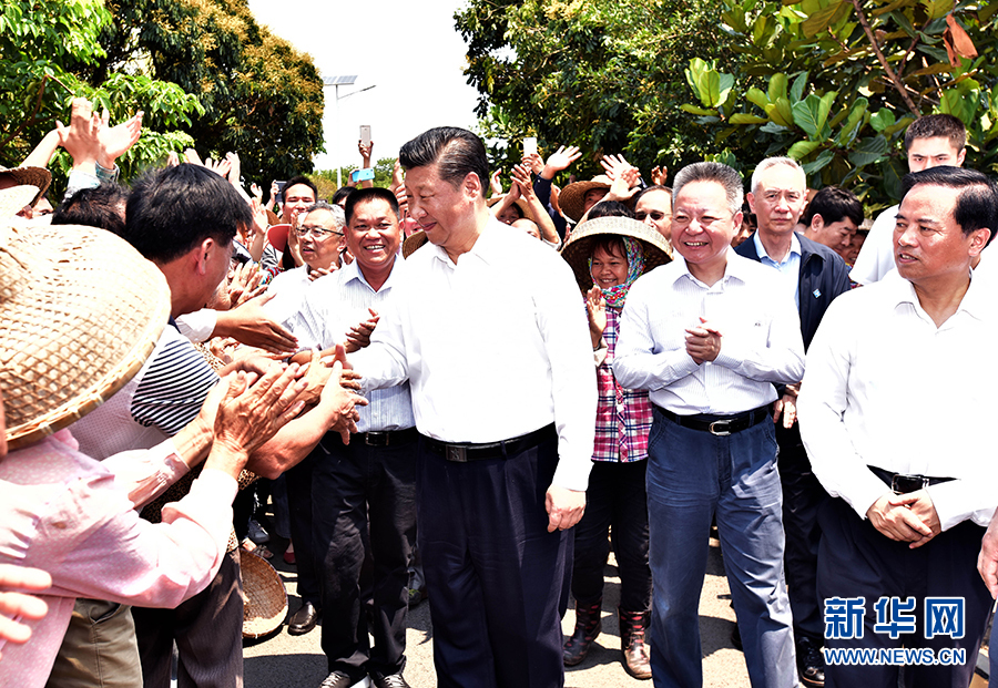 4月11日至13日,中共中央总书记、国家主席、中央军委主席习近平在海南考察。这是4月13日上午,习近平在海口市秀英区石山镇施茶村考察时,同闻讯前来的村民亲切握手。新华社记者 李涛 摄
