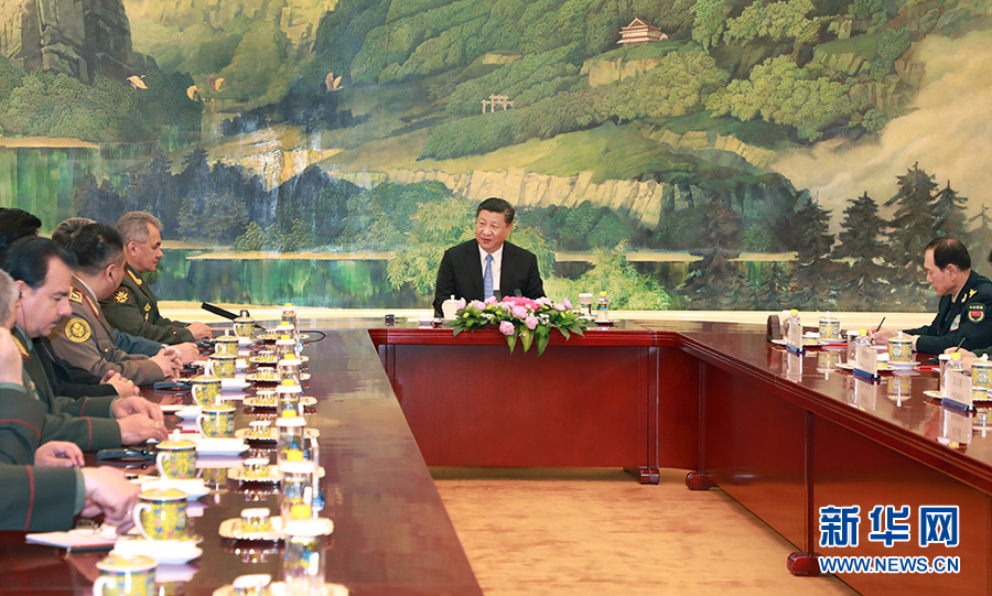 习近平表示,上海合作组织各成员国防务部门和军队认真贯彻元首共识,不断完善防务部门和军队领导会议机制,积极开展各领域互利合作,特别是打造了“和平使命”系列军事演习、“和平号角”军乐节等军事文化品牌,为维护地区安全稳定作出了积极贡献。