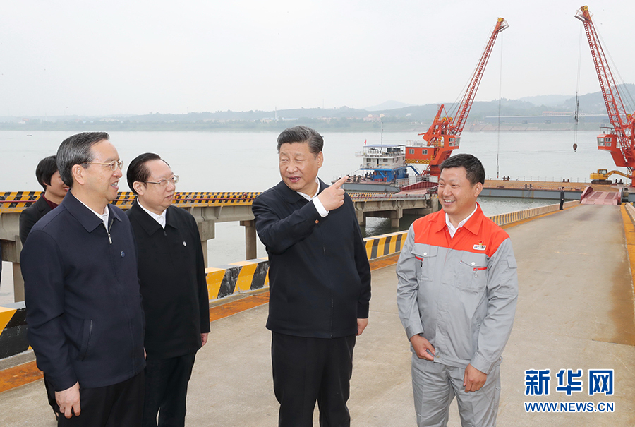 4月24日上午,中共中央总书记、国家主席、中央军委主席习近平从北京直飞湖北宜昌。一下飞机便前往长江沿岸考察调研长江生态环境修复工作,把脉长江经济带建设。新华社记者 鞠鹏 摄