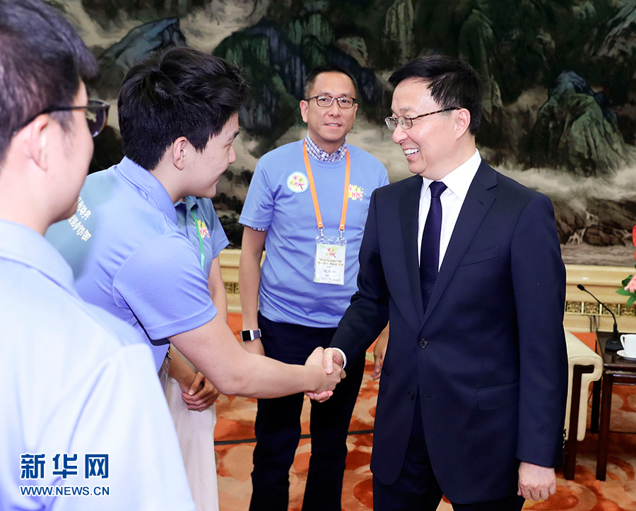 新华社北京6月29日电(记者刘欢)中共中央政治局常委、国务院副总理韩正29日下午在人民大会堂会见了香港各界青年代表访问团,并与他们进行了座谈交流。韩正表示,香港回归祖国以来,“一国两制”实践取得了举世公认的成功。习近平总书记十分关心青年健康成长,对广大香港青年寄予厚望。青年兴则国家兴,青年强则国家强。希望香港青年加强学习,增进对国家和民族历史的了解,热爱我们的国家和民族,传承爱国爱港光荣传统;勇于实践,把握香港融入国家发展大局的历史机遇,把个人事业同香港发展、国家发展紧密结合起来,在报效香港、报效国家中施展才华、实现抱负,为保持香港长期繁荣稳定、实现中华民族伟大复兴的中国梦作出贡献。