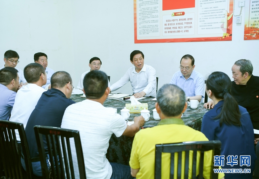 7月25日至28日,中共中央政治局常委、全国人大常委会委员长栗战书在福建调研。这是7月27日,栗战书在南平市政和县梅坡村同基层干部和群众唠家常、算收入、谈致富。 新华社记者 申宏 摄