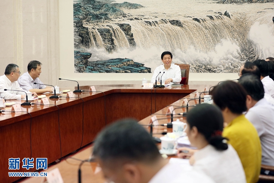 8月29日,中共中央政治局常委、全国人大常委会委员长栗战书在北京主持召开部分全国人大代表座谈会,就加强和改进全国人大工作、更好发挥人大代表作用听取代表意见建议。 新华社记者刘卫兵摄