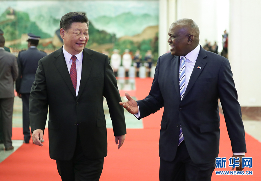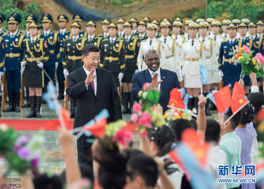 8月31日,国家主席习近平在北京人民大会堂同博茨瓦纳总统马西西举行会谈。这是会谈前,习近平在人民大会堂北大厅为马西西举行欢迎仪式。 新华社记者 李涛 摄