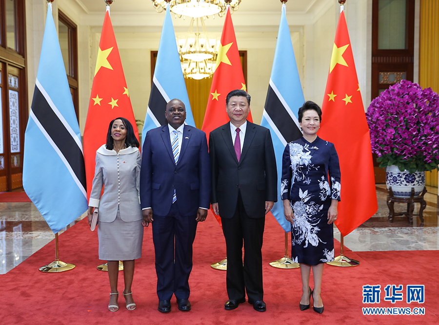 8月31日,国家主席习近平在北京人民大会堂同博茨瓦纳总统马西西举行会谈。这是习近平和夫人彭丽媛同马西西夫妇合影。 新华社记者 鞠鹏 摄