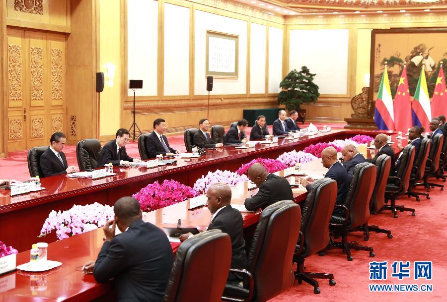 9月1日,国家主席习近平在北京人民大会堂会见科摩罗总统阿扎利。 新华社记者丁海涛摄