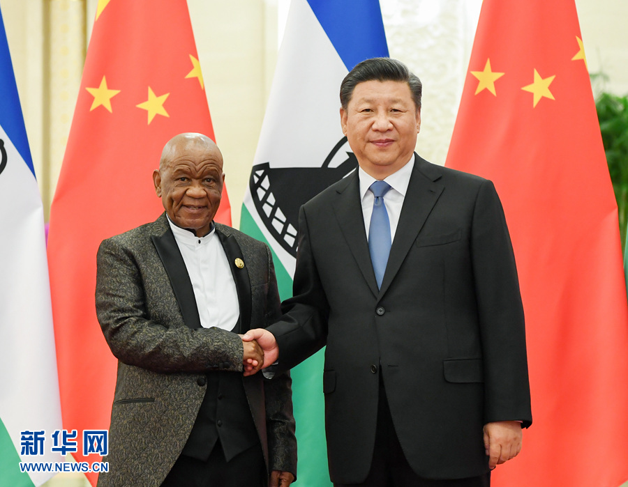 9月6日,国家主席习近平在北京人民大会堂会见莱索托首相塔巴内。 新华社记者 饶爱民 摄
