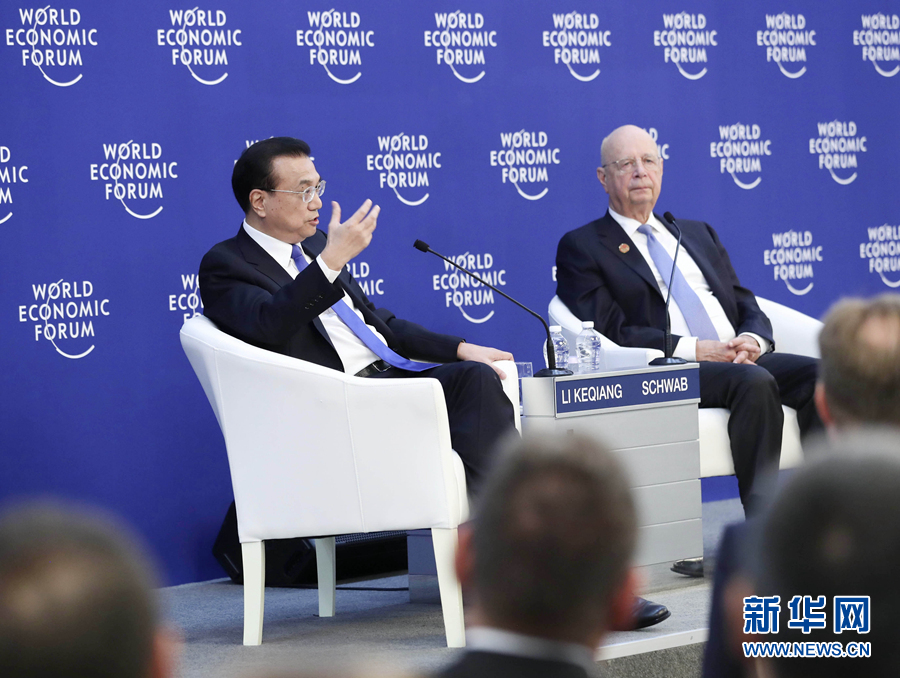 李克强就中国金融开放、知识产权保护、减税降费、创新创业、世界贸易体制改革等问题回答了提问。世界经济论坛主席施瓦布主持对话会。来自中国、美国、欧洲、日本等国和地区200余名代表出席。