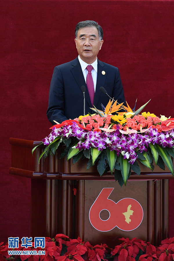 9月20日,宁夏回族自治区成立60周年庆祝大会在贺兰山体育场隆重举行。中共中央、全国人大常委会、国务院、全国政协、中央军委发来贺电。中共中央政治局常委、全国政协主席、中央代表团团长汪洋出席庆祝大会并讲话。 新华社记者 张领 摄