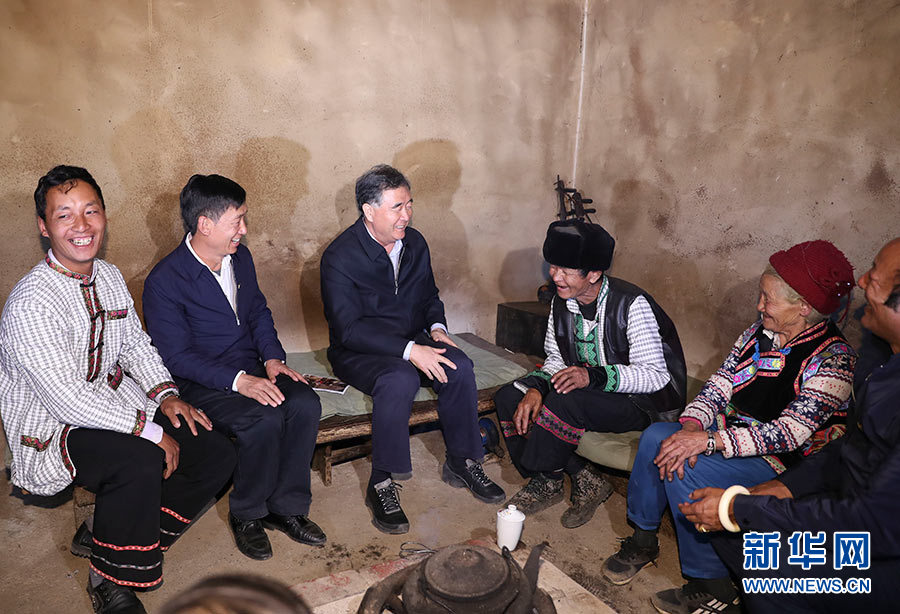 近日,中共中央政治局常委、全国政协主席汪洋在云南调研藏区民族宗教和脱贫攻坚工作。这是10月15日,汪洋在香格里拉市虎跳峡镇金星村调研。 新华社记者 丁林 摄