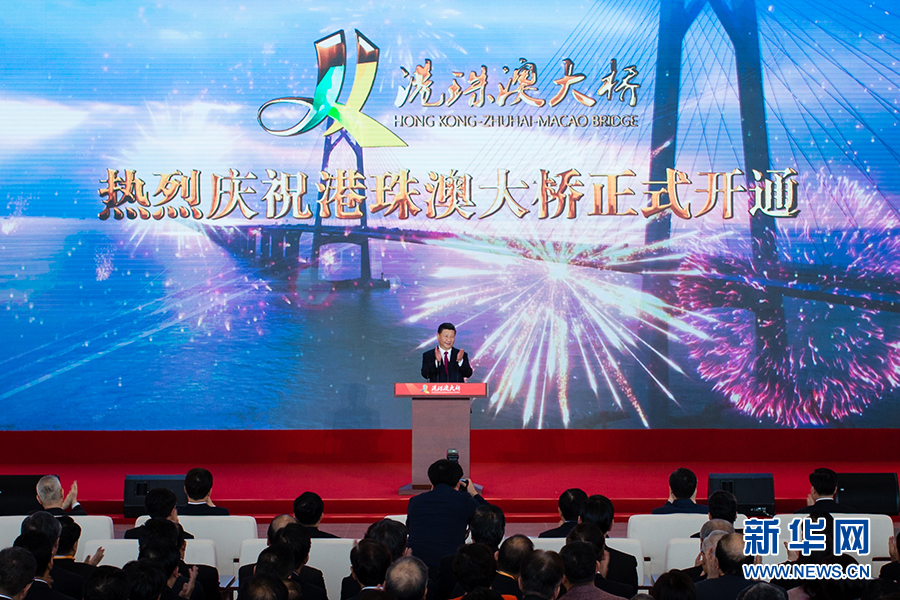 10月23日上午,港珠澳大桥开通仪式在广东省珠海市举行。中共中央总书记、国家主席、中央军委主席习近平出席仪式,宣布大桥正式开通并巡览大桥。 新华社记者刘彬摄