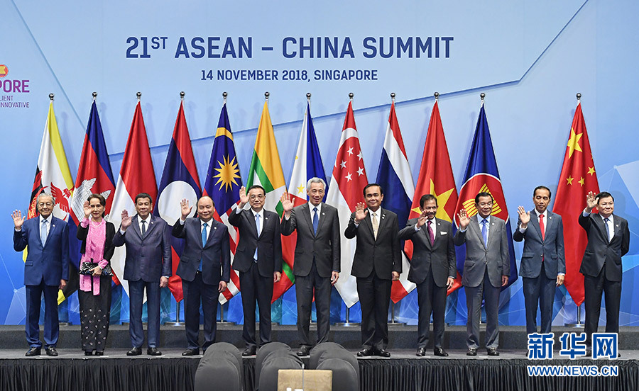 当地时间11月14日上午,国务院总理李克强在新加坡会展中心出席第21次中国-东盟(10+1)领导人会议暨庆祝中国-东盟建立战略伙伴关系15周年纪念峰会。这是与会领导人集体合影。 新华社记者 张领 摄