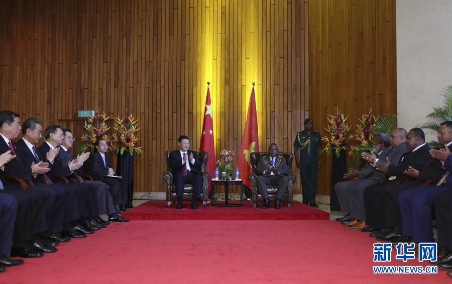 11月16日,国家主席习近平在莫尔兹比港会见巴布亚新几内亚总督达达埃。新华社记者 丁林 摄