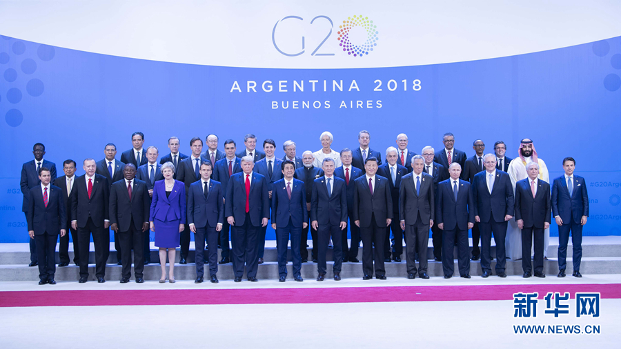 当地时间11月30日,二十国集团领导人第十三次峰会在阿根廷布宜诺斯艾利斯举行。国家主席习近平出席第一阶段会议并发表题为《登高望远,牢牢把握世界经济正确方向》的重要讲话。这是习近平同其他与会领导人合影。 新华社记者 李涛 摄