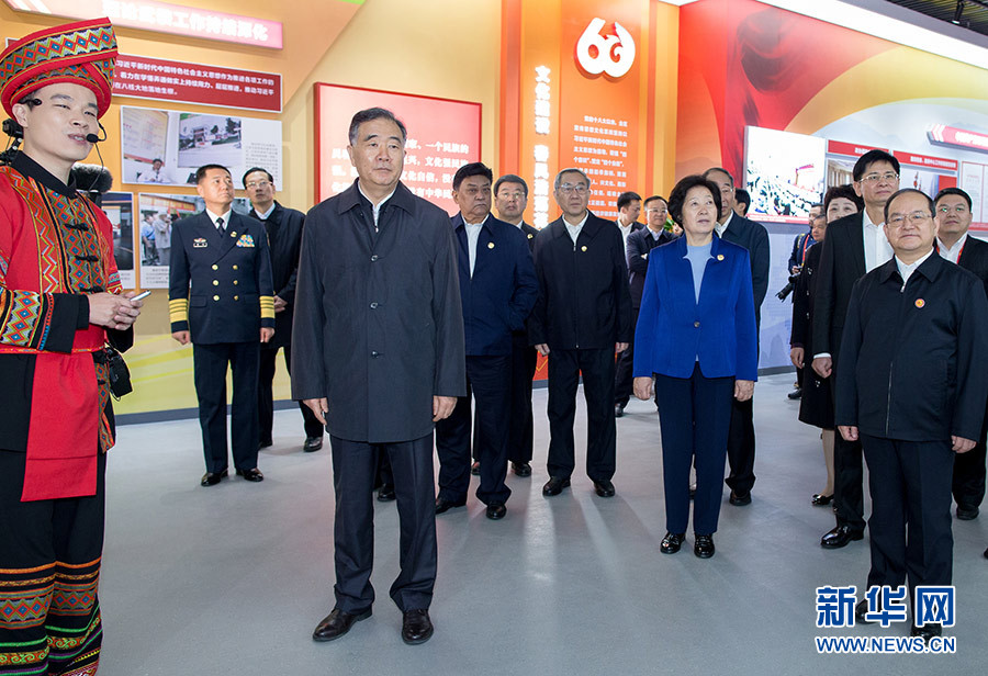 12月10日,中共中央政治局常委、全国政协主席、中央代表团团长汪洋率代表团全体成员来到广西规划馆,参观《建设壮美广西 共圆复兴梦想——广西壮族自治区成立60周年成就展》。 新华社记者 申宏 摄