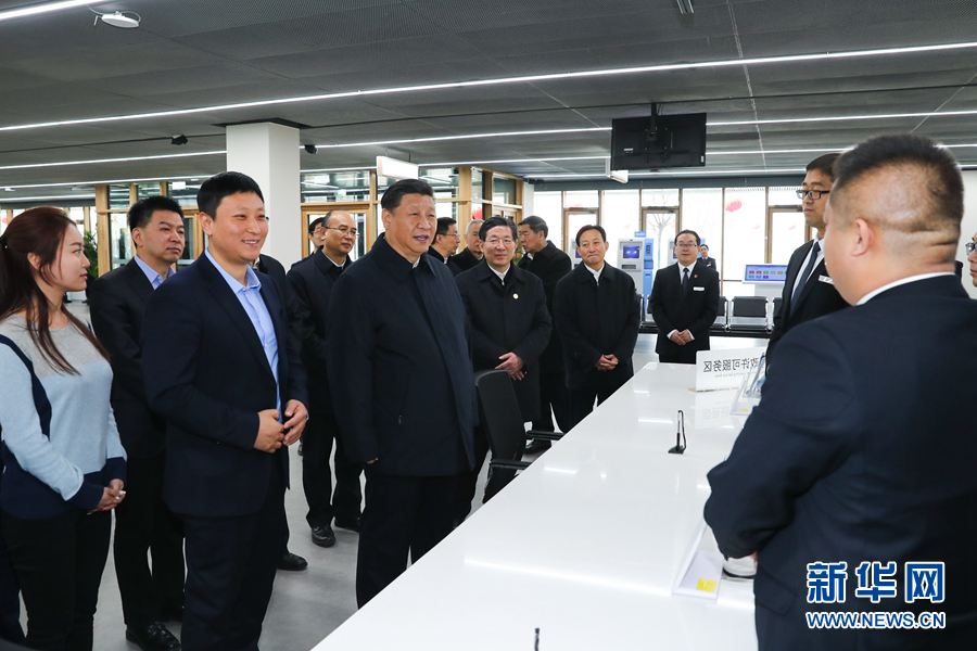 1月16日,中共中央总书记、国家主席、中央军委主席习近平在河北雄安新区考察调研。这是习近平在雄安新区政务服务中心同工作人员和办事群众亲切交谈。 新华社记者 谢环驰 摄