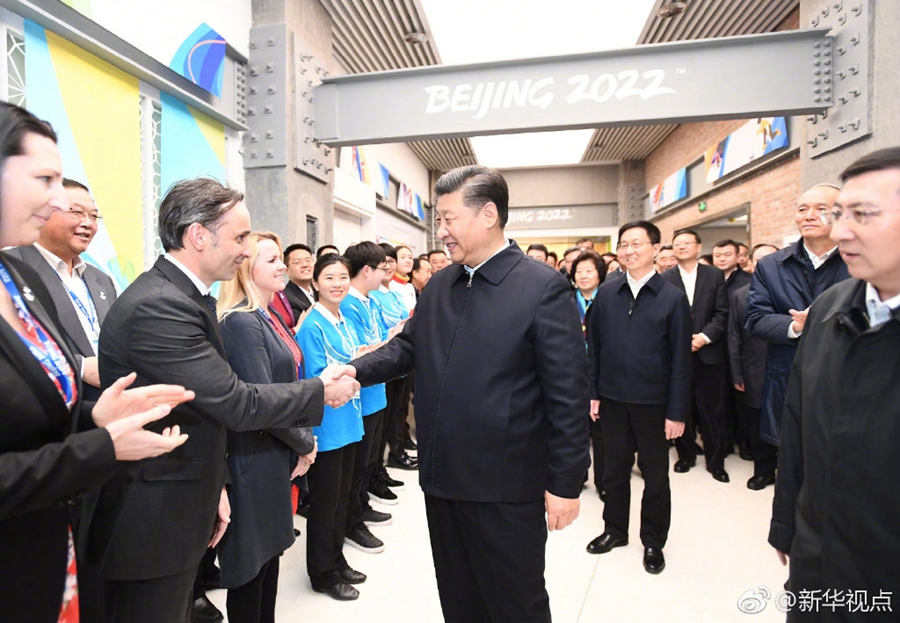 在北京石景山首钢园区,习近平走进北京冬奥组委办公楼。工作人员和志愿者代表挤满了大厅,习近平同大家握手致意。他强调,举办北京冬奥会、冬残奥会意义重大,我们要言必信、行必果,扎实工作、步步为营。我们要拿竞技奖牌,还要拿精神奖牌、廉洁奖牌。习近平向他们和所有参与北京冬奥会的工作者和支持北京冬奥会的各方面朋友致以新春祝福。(记者张晓松、谢环驰)