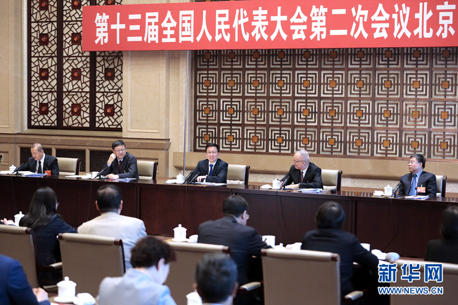 3月8日,中共中央政治局常委、国务院副总理韩正参加十三届全国人大二次会议北京代表团的审议。新华社记者 刘彬 摄