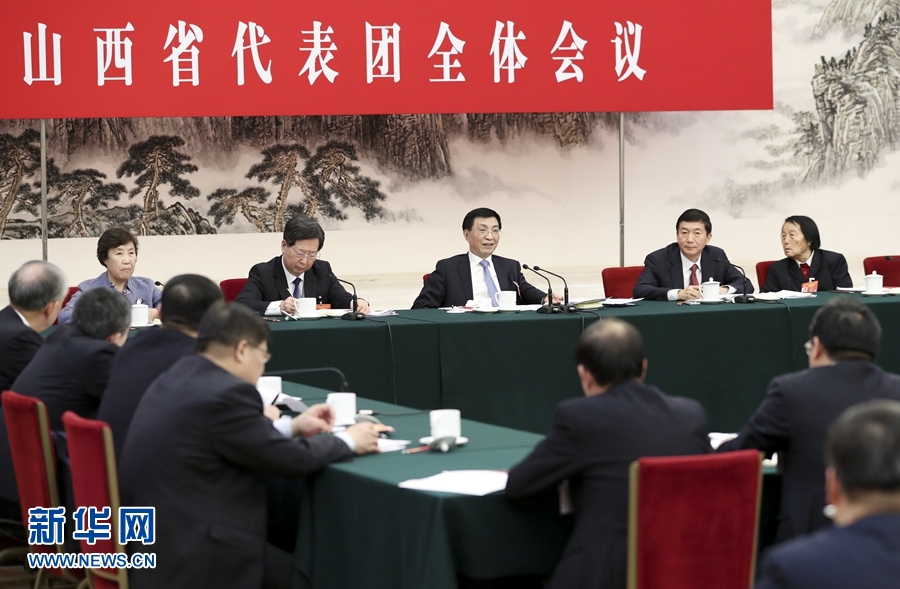 3月12日,中共中央政治局常委、中央书记处书记王沪宁参加十三届全国人大二次会议山西代表团的审议。 新华社记者 丁海涛 摄