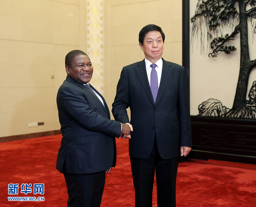 4月24日,全国人大常委会委员长栗战书在北京人民大会堂会见莫桑比克总统纽西。 新华社记者刘卫兵摄