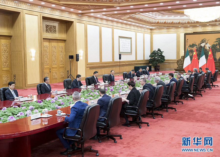 习近平指出,上个月,我对意大利成功进行国事访问,受到热情周到接待,我再次表示衷心感谢。访问期间,我深感意大利各界对发展对华合作的热切期待以及意大利人民对中国人民的真挚友谊。意方宣布归还查获的700多件流失中国文物,也引起中国人民热烈反响,相关展览正在中国国家博物馆举办。中方高度赞赏意大利在西方大国中率先同中方签署共建“一带一路”合作谅解备忘录,愿同意方一道努力,携手推进共建“一带一路”,扩大贸易和相互投资,深化务实合作和科技人文交流,让中意关系结出更加丰硕果实、两国人民从友好合作中有更多获得感,成为中欧共建“一带一路”合作的典范。双方还要牢牢把握中意关系的战略内涵,在完善全球治理体系、维护自由贸易和多边主义等方面加强协调配合,构建相互尊重、公平正义、合作共赢的新型国际关系。希望意方为推动中欧关系发展发挥更大作用。