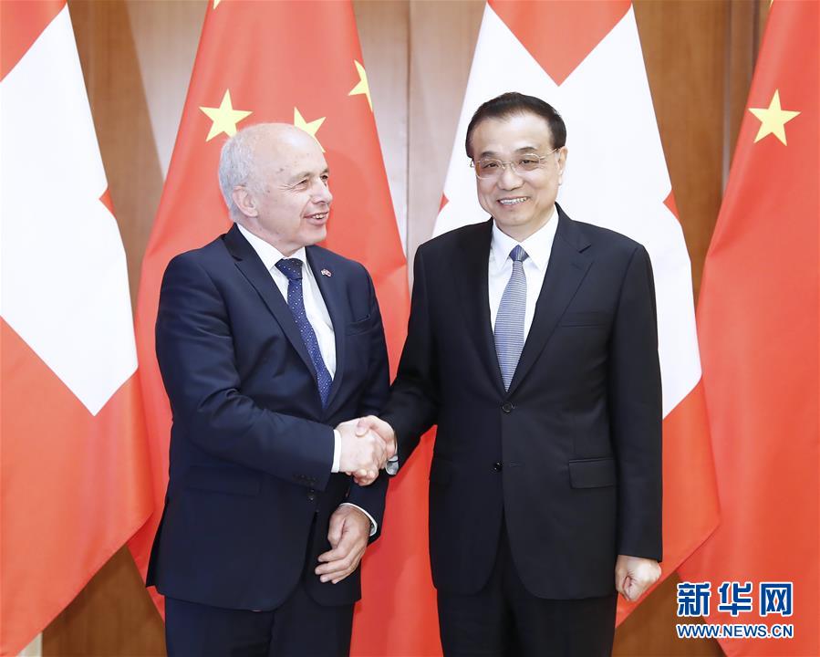 李克强表示,瑞士是最早承认并同新中国建交的西方国家之一,中瑞有着友好交往的传统。建交以来,中瑞关系在相互尊重、平等互利基础上不断向前发展。习近平主席将同主席先生举行会谈,为两国关系发展注入新的动力。我们愿同瑞方增进政治互信,加强高层交往,挖掘合作潜力,将“一带一路”倡议同瑞士发展战略对接,不断扩大双向投资,深化在高端制造、金融、科技、创新等领域的合作,通过扩大贸易规模实现经贸关系平衡发展,推动双方务实合作迈出新步伐。中瑞自贸协定对两国经贸关系发展起到了重要促进作用,瑞士企业已成为中国新一轮开放的受益者。中方愿同瑞方尽快开启自贸协定升级谈判进程。希望双方加强在中欧以及多边框架下的沟通协调,共同为世界和平和发展事业作出贡献。
