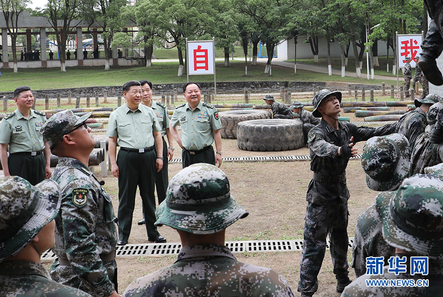 5月21日,中共中央总书记、国家主席、中央军委主席习近平到陆军步兵学院视察。这是习近平观看学员进行极限训练。 新华社记者 李刚 摄