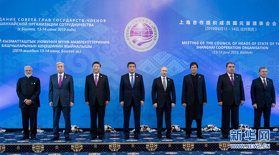 6月14日,上海合作组织成员国元首理事会第十九次会议在吉尔吉斯斯坦首都比什凯克举行。国家主席习近平同印度总理莫迪、哈萨克斯坦总统托卡耶夫、吉尔吉斯斯坦总统热恩别科夫、巴基斯坦总理伊姆兰·汗、俄罗斯总统普京、塔吉克斯坦总统拉赫蒙、乌兹别克斯坦总统米尔济约耶夫出席会议。习近平在会上发表重要讲话。这是小范围会谈前,上海合作组织成员国元首集体合影。 新华社记者 谢环驰 摄