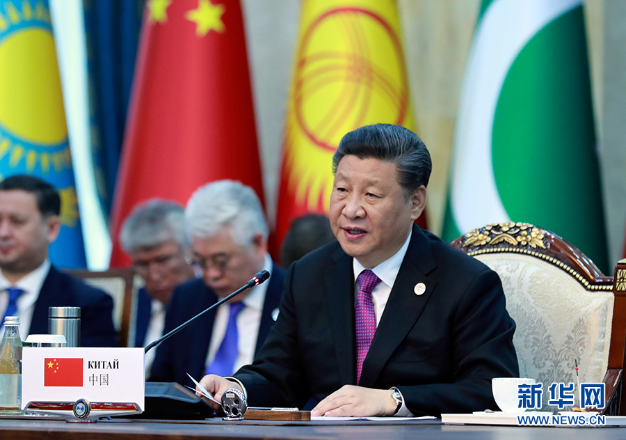 6月14日,国家主席习近平在吉尔吉斯斯坦首都比什凯克出席上海合作组织成员国元首理事会第十九次会议并发表重要讲话。 新华社记者 丁林 摄