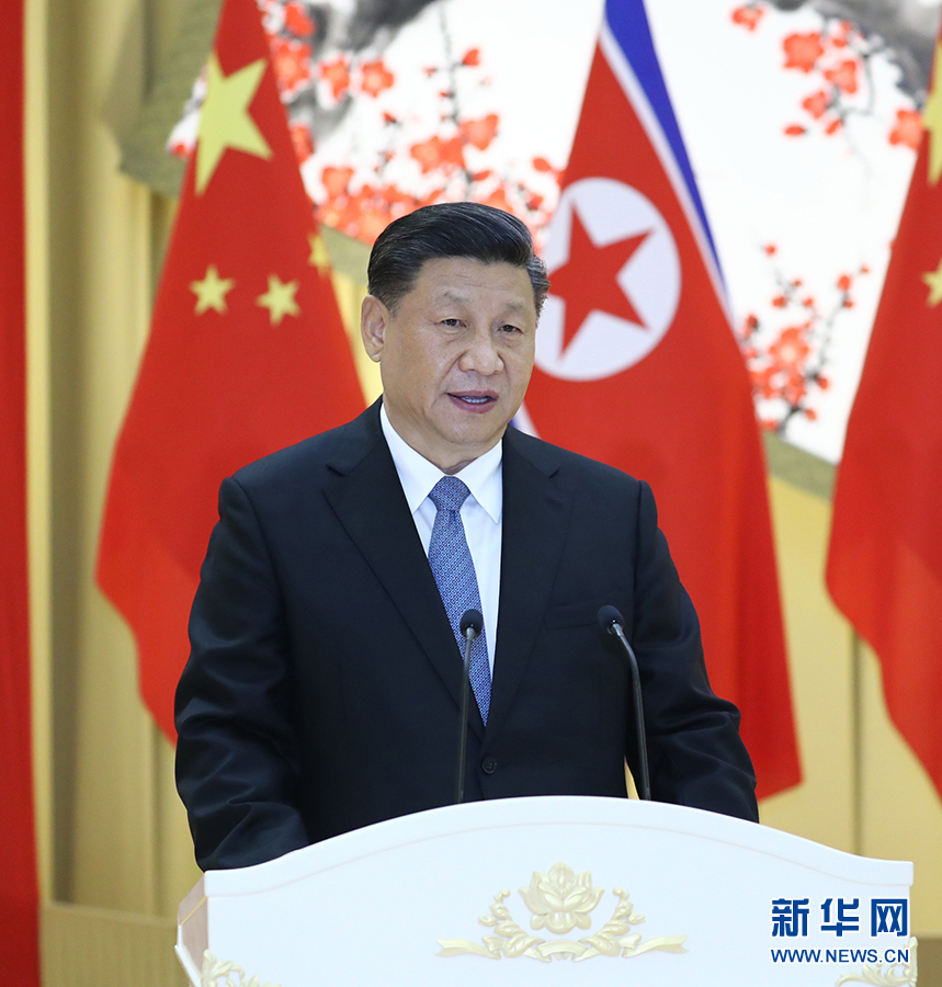习近平在致辞中指出,回顾70年中朝关系史,双方老一辈领导人亲手缔造了中朝传统友谊,为我们留下了共同宝贵财富。尽管沧海桑田、风云变幻,中朝友谊历久弥坚。刚才,我同金正恩委员长进行了富有成果的会谈,共同擘画中朝关系美好未来,达成一系列重要共识。我们一致认为,中朝双方要坚定不移传承弘扬传统友谊,续写时代新篇章。我们一致认为,政治解决半岛问题是人心所向、大势所趋,要继续高举和平对话旗帜,为实现地区乃至世界和平、稳定、繁荣作出新的更大贡献。