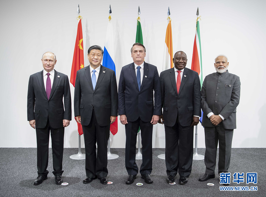 6月28日,金砖国家领导人会晤在大阪举行。国家主席习近平、巴西总统博索纳罗、俄罗斯总统普京、印度总理莫迪、南非总统拉马福萨出席。新华社记者 李涛 摄