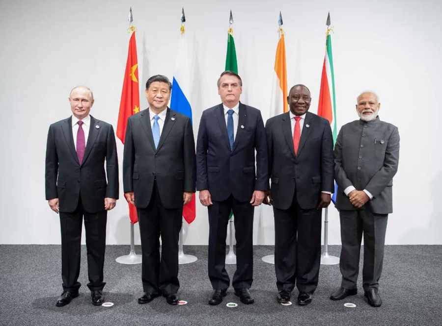 ↑金砖国家领导人会晤6月28日在大阪举行。与会领导人围绕金砖伙伴关系、全球治理、科技创新合作等深入交换意见,凝聚共识。新华社记者李涛摄
