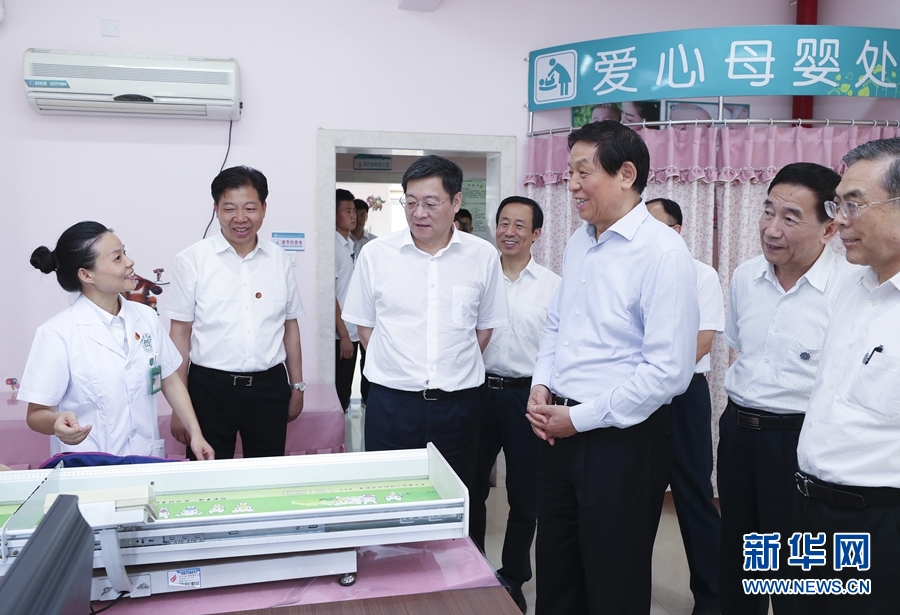 7月23日至25日,中共中央政治局常委、全国人大常委会委员长栗战书在湖南调研。这是7月24日,栗战书在株洲市栗雨街道社区卫生服务中心调研。 新华社记者 姚大伟 摄