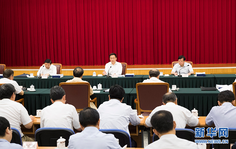 7月26日,中共中央政治局常委、国务院副总理韩正在国家发展改革委调研指导“不忘初心、牢记使命”主题教育,主持召开座谈会,听取国家发展改革委开展主题教育的情况汇报并讲话。 新华社记者 黄敬文 摄
