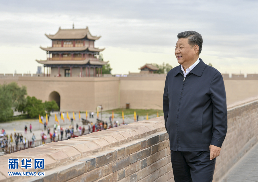 8月20日上午,中共中央总书记、国家主席、中央军委主席习近平来到嘉峪关关城,登上城楼察看关城整体面貌,听取河西走廊长城、关隘历史文化情况介绍。 新华社记者 谢环驰 摄
