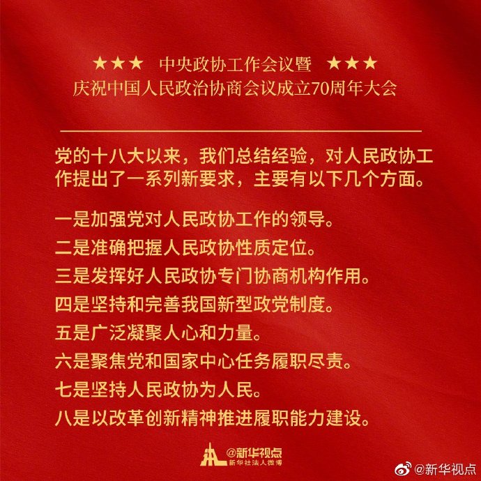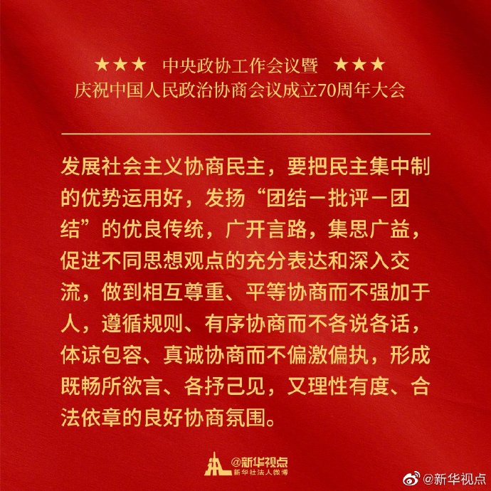 金句来了!习近平在中央政协工作会议暨庆祝中国人民政治协商会议成立70周年大会上的讲话金句⬇️ ​​​​