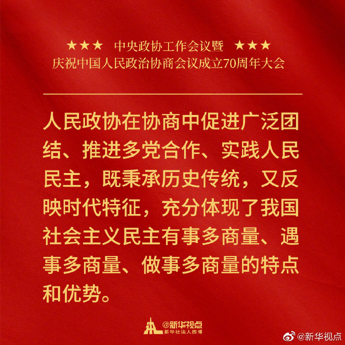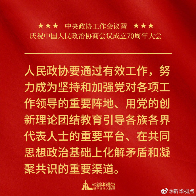 习近平在中央政协工作会议暨庆祝中国人民政治协商会议成立70周年大会上的讲话金句