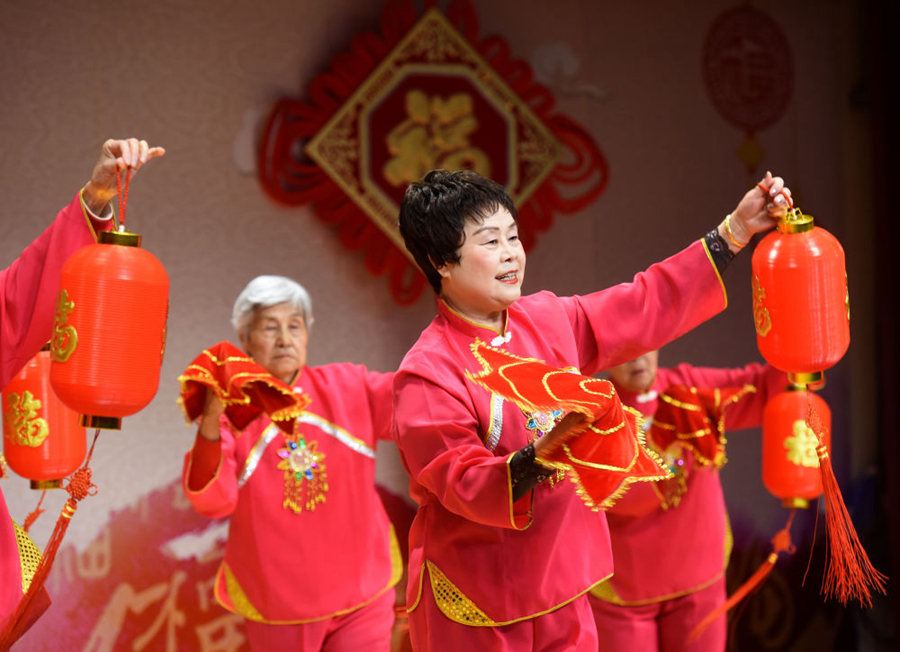 2018年2月13日,北京海淀区四季青敬老院举办春节联欢会,敬老院的老人们纷纷登台献艺,喜迎新春。