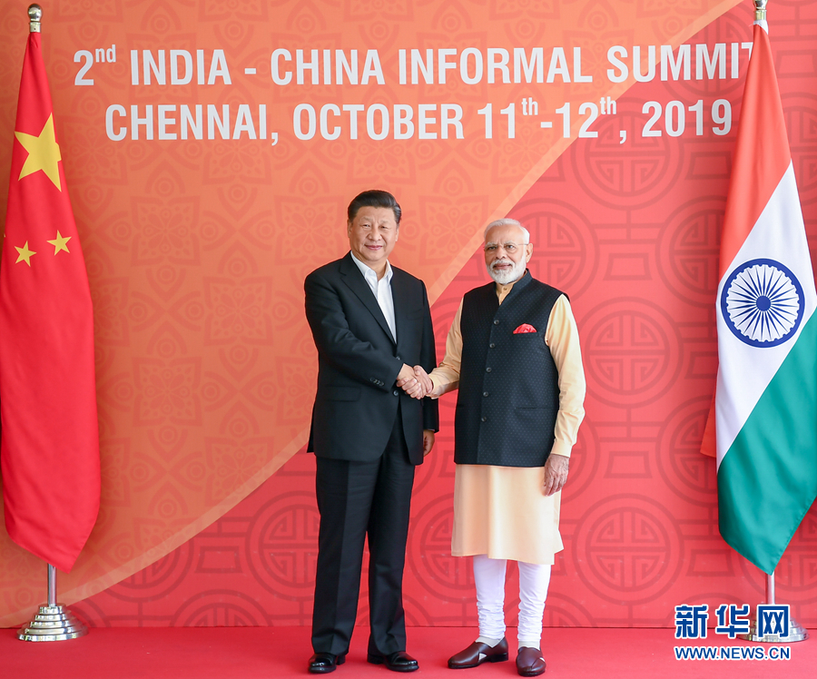 10月12日,国家主席习近平在金奈同印度总理莫迪继续举行会晤。 新华社记者 王晔 摄
